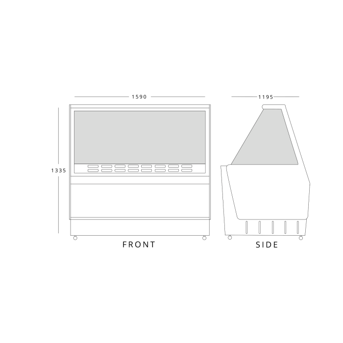 - Dimensions: 1335 mm (H) x 1590 mm (W) x 1195 mm (D).