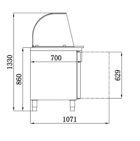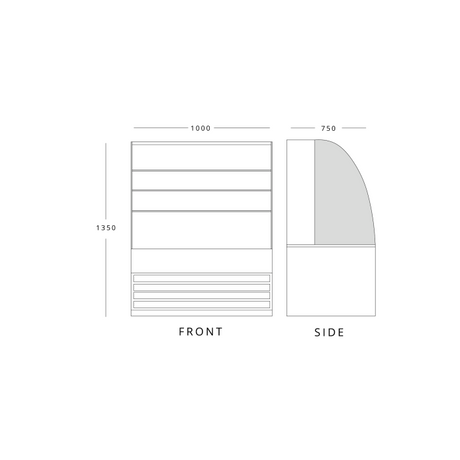 Serve Over Counter 1.3m Curved Glass