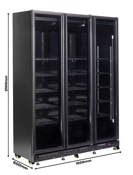 Refrigerator 3 Glass Doors Black Heat