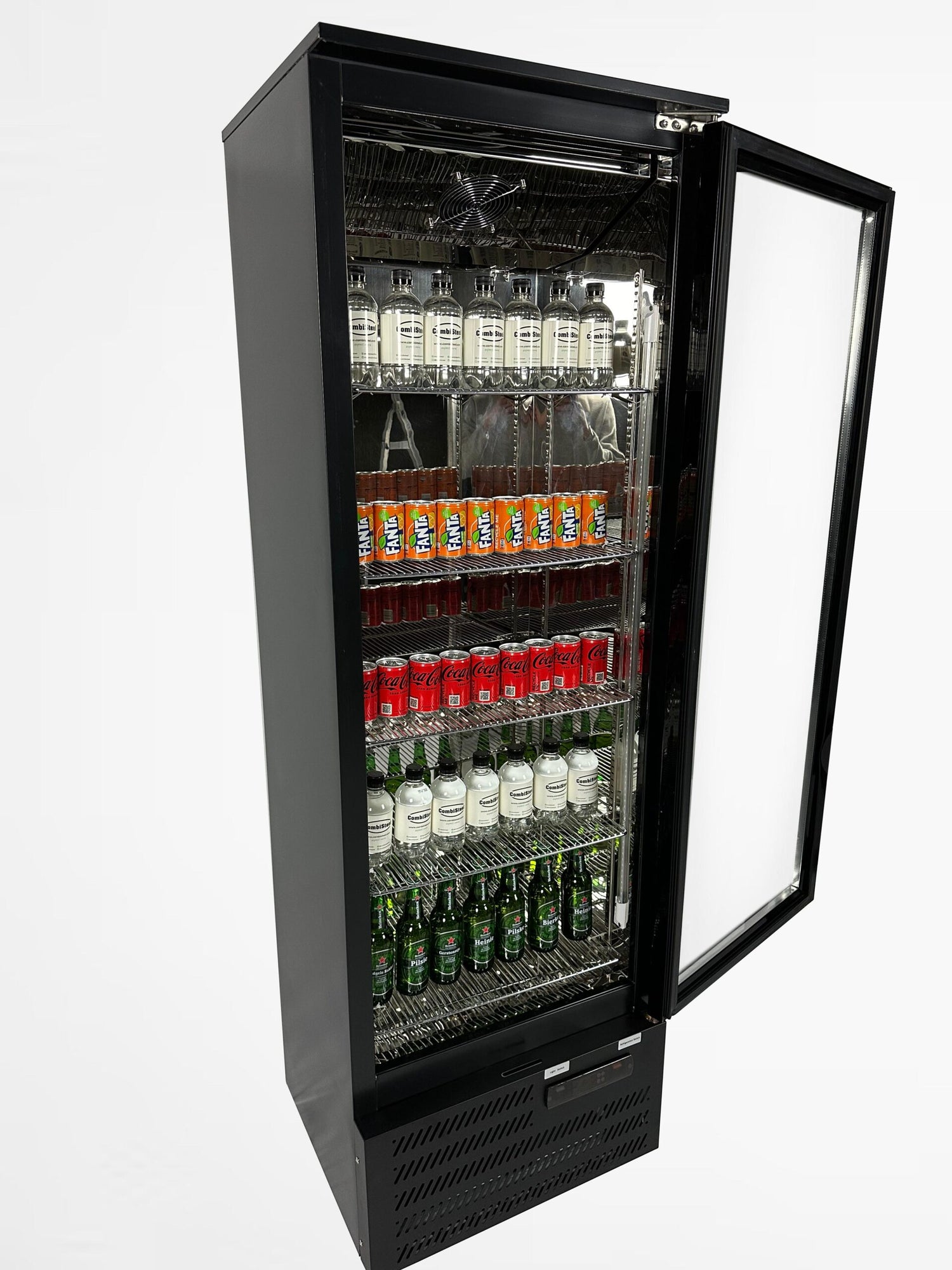 This stylish and professional black backbar cooler is perfect for use in bars, restaurants, and other hospitality establishments. With a generous capacity of 293 litres and a sleek design, this cooler offers not only a practical but also an aesthetically pleasing solution for storing beverages. The forced cooling ensures your drinks are cooled quickly and evenly, while the adjustable shelves offer maximum flexibility in arrangement. The dimensions are 600x515x1820 mm (WxDxH)