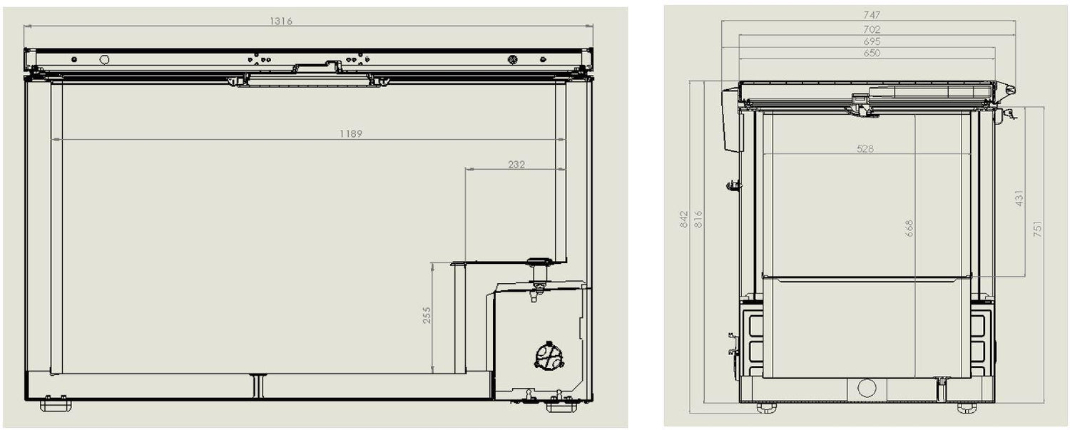 - Exterior: 1316mm (W) x 743mm (D) x 840mm (H)