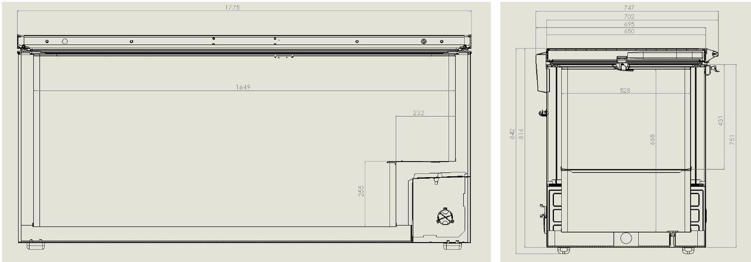 - External Dimensions (WxDxH): 1775 x 743 x 840 mm